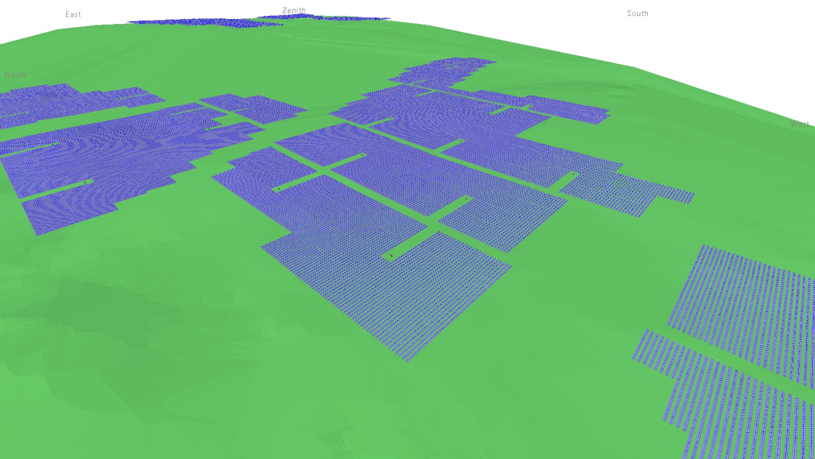Modelagem 3D, levando em conta os sombreamentos causados pelos aerogeradores.