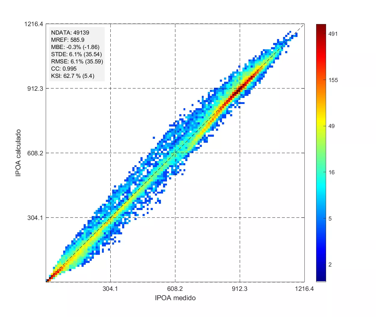 Analisamos os dados solarimétricos medidos na planta fotovoltaica, calibrando o Ano Típico (TMY) com o IPOA real, gerando um TMY com resolução temporal de 1 minuto. Isso nos permitiu obter estimativas mais precisas das perdas por clipping.