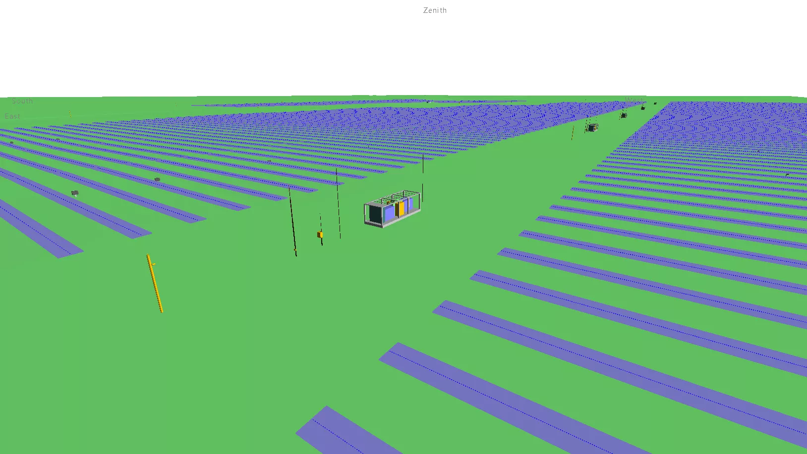 Modelamos os trackers no PVsyst com base no levantamento dos topos das estacas realizado em campo durante a construção da UFV, considerando a inclinação e a altura reais de cada tracker. Esse trabalho resultou em estimativas precisas das perdas por sombreamento.