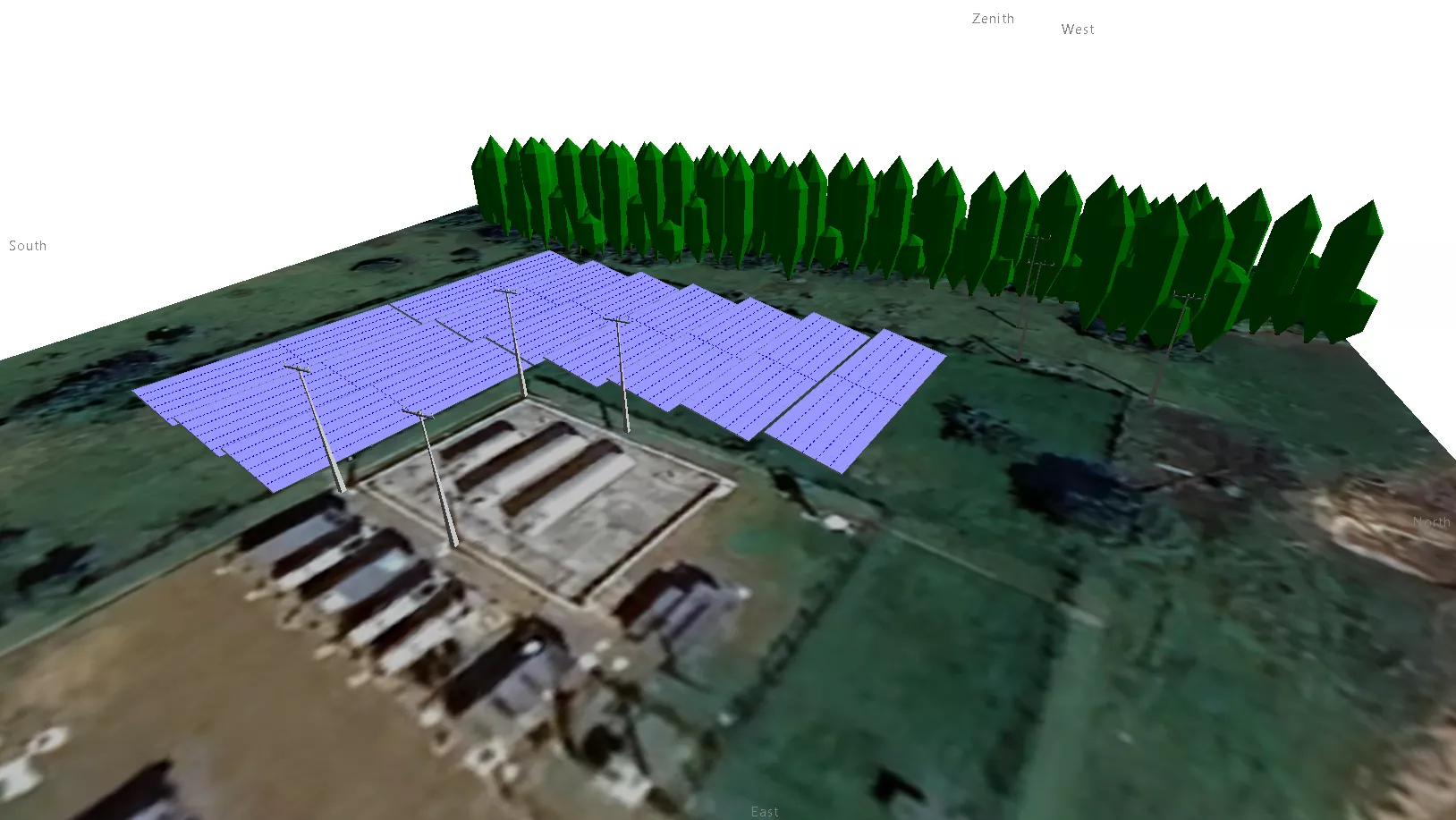 Realizamos a modelagem dos módulos da UFV em conjunto com árvores, postes e outros objetos que possam causar sombreamento e impactar a geração solar.